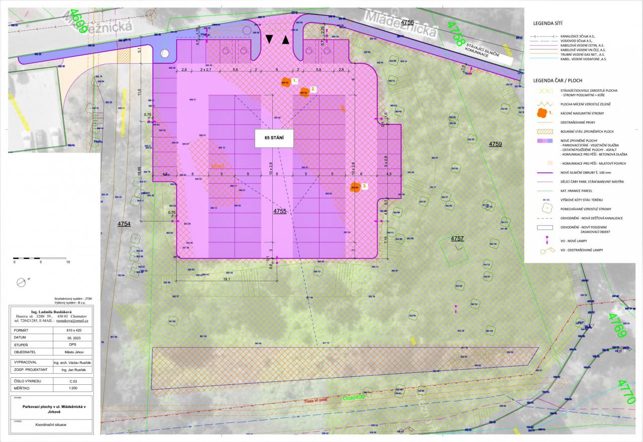 Budování parkoviště si vynutí pokácení pěti větších bříz a vymýcení nekulturní náletové zeleně na ploše 1 550 metrů čtverečních.
